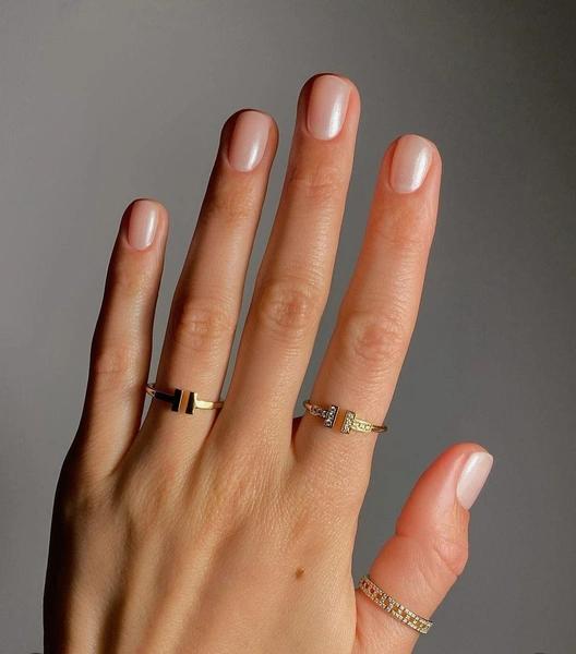Однако здесь по-прежнему важен не рисунок и не сияющий декор, а ощущение. За основу все так же берем полупрозрачную базу. Это может быть слегка молочный оттенок, нежно-розовый или так называемый гель-«желе» — почти прозрачный, но с легким тоном. А вот поверх добавляем жемчужную вуаль в виде втирки или мягкий хром с помощью перламутрового лака, который дает тот самый эффект перелива. Свет падает на ногти, и появляется ощущение объема, будто покрытие чуть выпуклое и действительно напоминает пузырь.