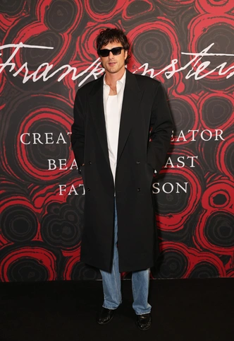 Во время промо‑тура «Франкенштейна» Джейкоб выходит на вечернее шоу в свитере с портретом Бориса Карлоффа (прим. редактора: Борис Карлофф — легендарный актер, который в 1930‑е стал главным лицом классического кинематографического монстра Франкенштейна и вообще иконой старого хоррора) из архивной коллекции Christopher Kane — идеальная локальная шутка для тех, кто следит и за модой, и за кино.