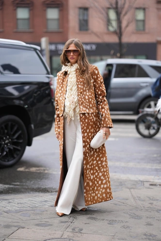Если в Париже базовая анималистика — это выверенный леопард, в Милане — демонстративный тигр, то Нью-Йорк неожиданно голосует за бэмби. Оленьи пятна и мягкая лесная палитра появляются на пальто, трикотажных платьях, юбках и даже колготках, но выглядят не инфантильно, а очень самоиронично, как будто вы надеваете на улицу любимого персонажа из детства и делаете его частью взрослой моды.