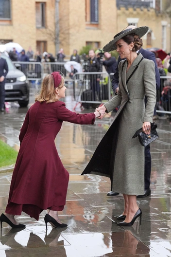 И еще немного о фирменном стиле. В этот раз мы снова видим на Кэтрин платье-пальто ее любимого приталенного силуэта. Обычно она предпочитает модели Alexander McQueen, но сейчас выбрала другой британский бренд — Suzannah London. Пальто выполнено из ткани в классическую клетку «принц Уэльский», что, как предположили некоторые из фанатов, может быть тонкой данью уважения ее мужу Уильяму.