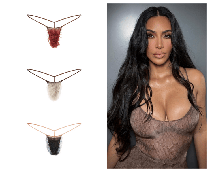 В итоге именно такая мода в конце концов привела к неожиданному (или все-таки ожиданному) релизу от Skims — трусиков с искусственными волосами. Прозрачная эластичная сетка, тонкие бретельки и кудрявые или прямые «волосы» — смелое и эпатажное решение от Ким Кардашьян, уже не первый раз подтверждающей статус лидера фэшн-провокаций. Напомним, что до этого она уже выпускала нечто шокирующее: бюстгалтеры с имитацией сосков (nipple bra) и съедобное белье, которое наделало не меньше шума, чем новый дроп Ким .
