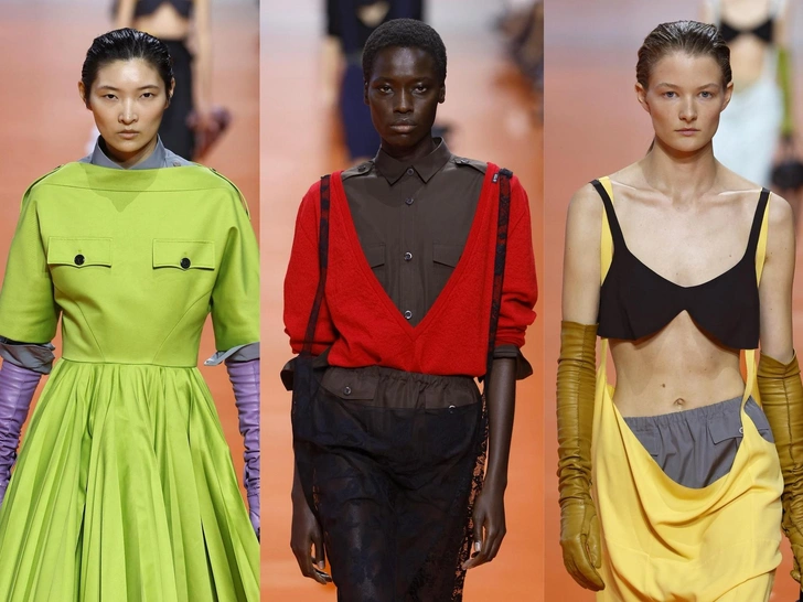 Начать стоит с детали, которая бросилась в глаза еще с первых кадров показа —пространства апельсинового оттенка, по которому ходили модели. Цвет напоминал ни то о новом IPhone, ни то об альбоме Тейлор Свифт, но точно давал понять: оранжевый — хит сезона.