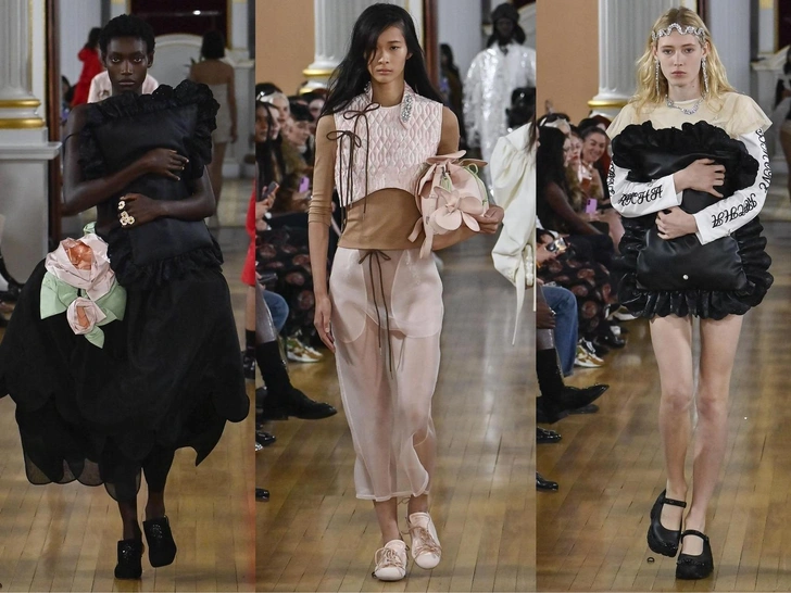 Интересно, что в этом сезоне схожий элемент использовался еще и на показах Erdem, Harris Reed, Richard Quinn и других брендов. Так что мода определенно разворачивается в сторону викторианской эпохи — интересно, ждет ли нас новая версия coquette core, наделавшего столько шума пару лет назад? .