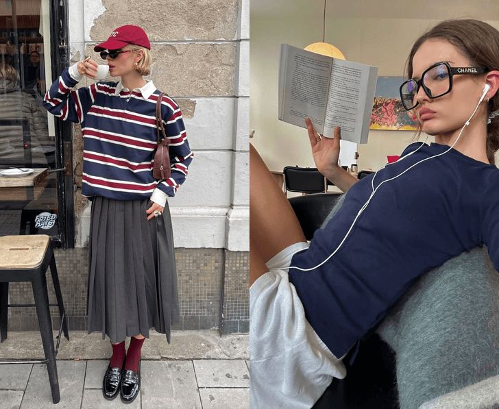 Официальный набор Pinterest звучит как дресс-код британского литературного факультета: объемные водолазки, винтажные пиджаки, классические сумки, будто доставшиеся по наследству от любимой интеллигентной бабушки. К этому добавляются свободные рубашки, галстуки и портфели-сэтчелы — чем винтажнее они выглядят, тем лучше.