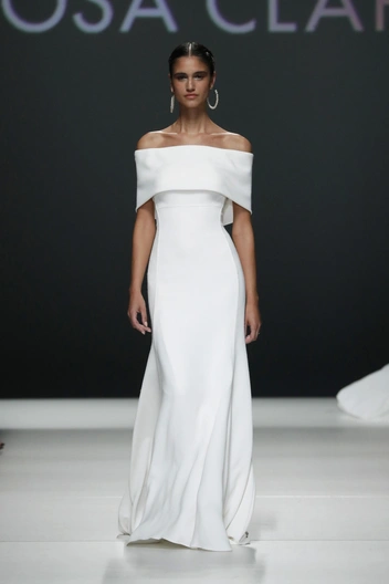 Это чистые линии, гладкие ткани, минимум декора и акцент на посадке. Сюда идеально вписывается прямое свадебное платье или лаконичный А‑силуэт.