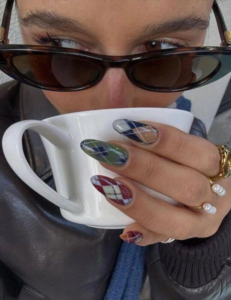 Согласитесь, звучит как отличная идея для холодного дня. Клетка, которая раньше мирно жила на наших пледах и верхней одежде, теперь официально переехала на ногти. Получается немного в стиле преппи, отдает эстетикой old money и выглядит максимально по-зимнему.