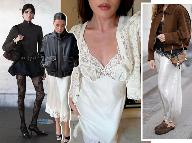 Ностальгия по 90-м теперь выглядит элегантно, а не вызывающе. Носите кружево с мини-юбкой, когда хочется вернуть в образы немного «подросткового бунта», или с платьем-комбинацией — если вы настолько вдохновились последними выходами Зои Кравиц и теперь настроены на изящную многослойность.