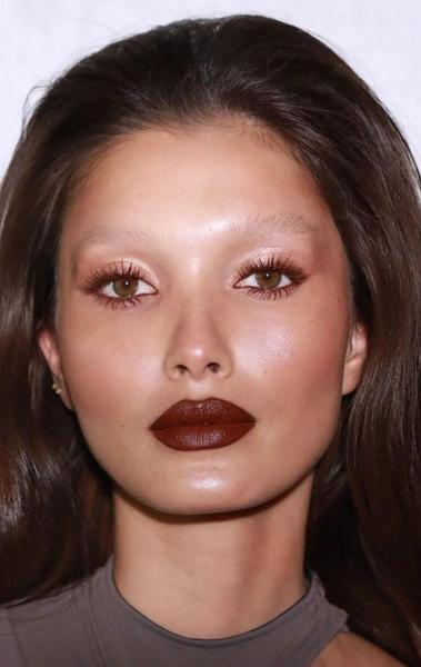 Сочетать такой акцент лучше с теплыми, сияющими тенями — золотыми, бронзовыми, светло-розовыми. И не забудьте про капельку светлого шиммера во внутреннем уголке глаза — это добавит свечения. Губы в таком случае лучше оставить нейтральными или повторить в помаде тот же винный оттенок, но в менее интенсивном варианте.